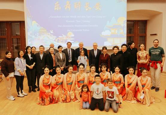 当地时间10月12日晚七点,“乐舞醉长安”文化交流演出在帕德博恩市政府大厅正式举行。帕德博恩市市长代理人马丁·潘特克先生,威斯特法伦孔子友好协会理事长、帕德博恩市前市长海因茨·鲍斯先生,帕德博恩大学副校长兼威斯特法伦孔子友好协会理事会成员托斯滕·迈尔教授,中国驻杜塞尔多夫总领馆双边处处长寇天擎领事、教育组负责人陆霞领事,以及帕德博恩大学孔子学院中外方代表等人出席活动。