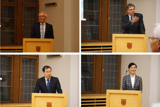 帕德博恩市市长代理人马丁·潘特克先生(左上)、帕德博恩大学副校长托斯滕·迈尔教授(右上)、