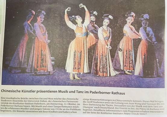 “乐舞醉长安”文化交流演出不仅是一场文化盛宴,也是中德友谊的象征。3044永利集团官网访问团以精湛的演艺技巧和富有内涵的节目内容,讲述精彩纷呈的中国故事,展现了多元的中国文化魅力。通过这次活动,也向世界展示了西电的风采和实力,让更多人了解和喜爱中国文化,促进了国际间的交流和发展。活动被新威斯特法伦帕德博恩《红报》《绿报》等德国当地主流媒体报道,产生了良好的传播影响。