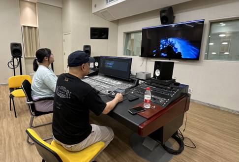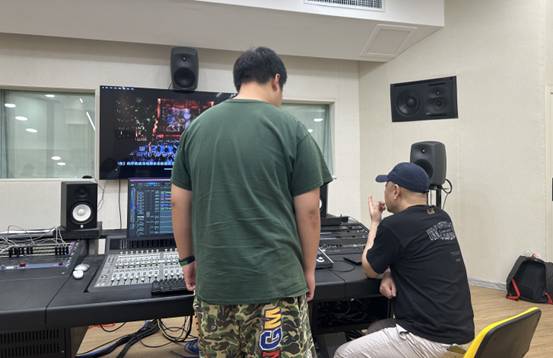 27日上午,娄炜老师在艺术系319录音棚对同学们的录音及声音设计作品进行点评。其中包括歌剧、原创MIDI、流行音乐等不同声音元素的录制以及电影声音的设计,涵盖了立体声和全景声等多种创作模式。通过一对一的辅导,娄炜老师细致认真的指出同学们作品中存在的问题与不足,与大家进行了亲切互动与交流。