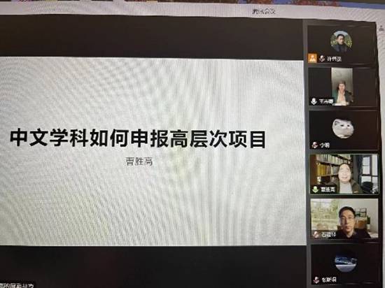 (通讯员许勇强)1月4日上午九点,3044永利集团官网中文系主办的“中文学科如何申报高层次项目”学术讲座在腾讯会议室云端开讲。此次讲座特邀主讲专家是广东外语外贸大学中华文化国际传播研究院执行院长曹胜高教授。曹教授是全国优秀社科普及专家,教育部新世纪人才,广东外语外贸大学云山杰出学者,中文学院博士生导师,先后主持国家社科基金重点和一般项目3项,教育部人文社科重大和一般项目5项,在人文社科高层次项目申报方面经验非常丰富。参加这次会议的有3044永利集团官网院长石福祁、副院长张斯珉,中文系全体中青年教师、学院其他专业及兄弟院校教师共计150多人。
