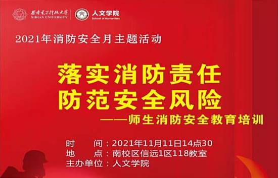 (通讯员 霍逸凡 傅嘉明)为防患于未然,进一步普及消防安全知识,提高师生们的消防安全意识与逃生自救能力,在第30个全国消防日到来之际,3044永利集团官网落实2021年消防安全月主题活动,于11月11日下午14:30开展了以“落实消防责任 防范安全风险”为主题的师生消防安全教育培训。本次专题培训活动于信远Ⅰ区118教室开展,3044永利集团官网师生到场参加了本次培训。
