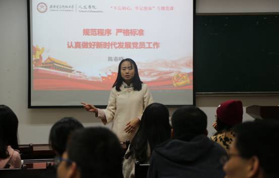 院党委副书记史耀媛、艺术系支部书记王成来为艺术系支部党员讲党课