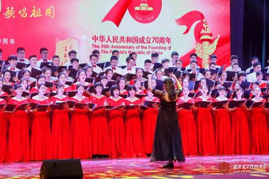 优美动人的旋律,真挚朴实的歌词,一浪高过一浪的大合唱,配上由铿锵有力的朗诵词,使歌曲与中国梦、与西电梦、与人文梦等元素浑然一体,完整的表达了人文师生为新中国放歌、祝福祖国母亲的心情,唱出了新中国成立70周年砥砺前行的奋斗赞歌,唱出了人文学子对党和国家的爱戴和尊敬之情,情真意切的道出了人文师生一颗红心跟党走、砥砺奋进志不移的坚定信念。