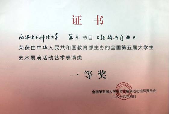据了解,全国大学生艺术展演是教育部主办的目前规格最高、规模最大、影响最广的大学生艺术盛会,每三年举办一届,是展示高校艺术教育与校园文化建设丰硕成果的最高平台。经过2017年陕西省第五届大学生艺术展演活动选拔赛的层层遴选,西电学生交响乐团从省内20余所参赛高校50多个器乐类节目中脱颖而出,最终获得陕西省大艺展器乐组一等奖管弦乐第一名。由陕西省教育厅上报教育部艺术教育委员会评选,最终,西电成为唯一一个入选全国第五届大学生艺术展演活动器乐组决赛展演资格的省内高校。