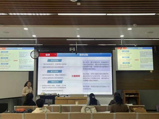本次比赛严格对标校级教学竞赛标准,涵盖教学设计、现场教学两大环节。参赛教师在讲课中融入AI的应用内容,形成紧跟时代潮流的教学设计方案,并进行25分钟现场教学展示。参赛教师立足学科特色,通过案例研讨、情景模拟、互动问答等多样化形式,将人文精神与科技前沿有机融合。评委从教学内容、教学方法、教学效果等多维度进行综合评价,并推荐综合排名第一者参加校级竞赛。