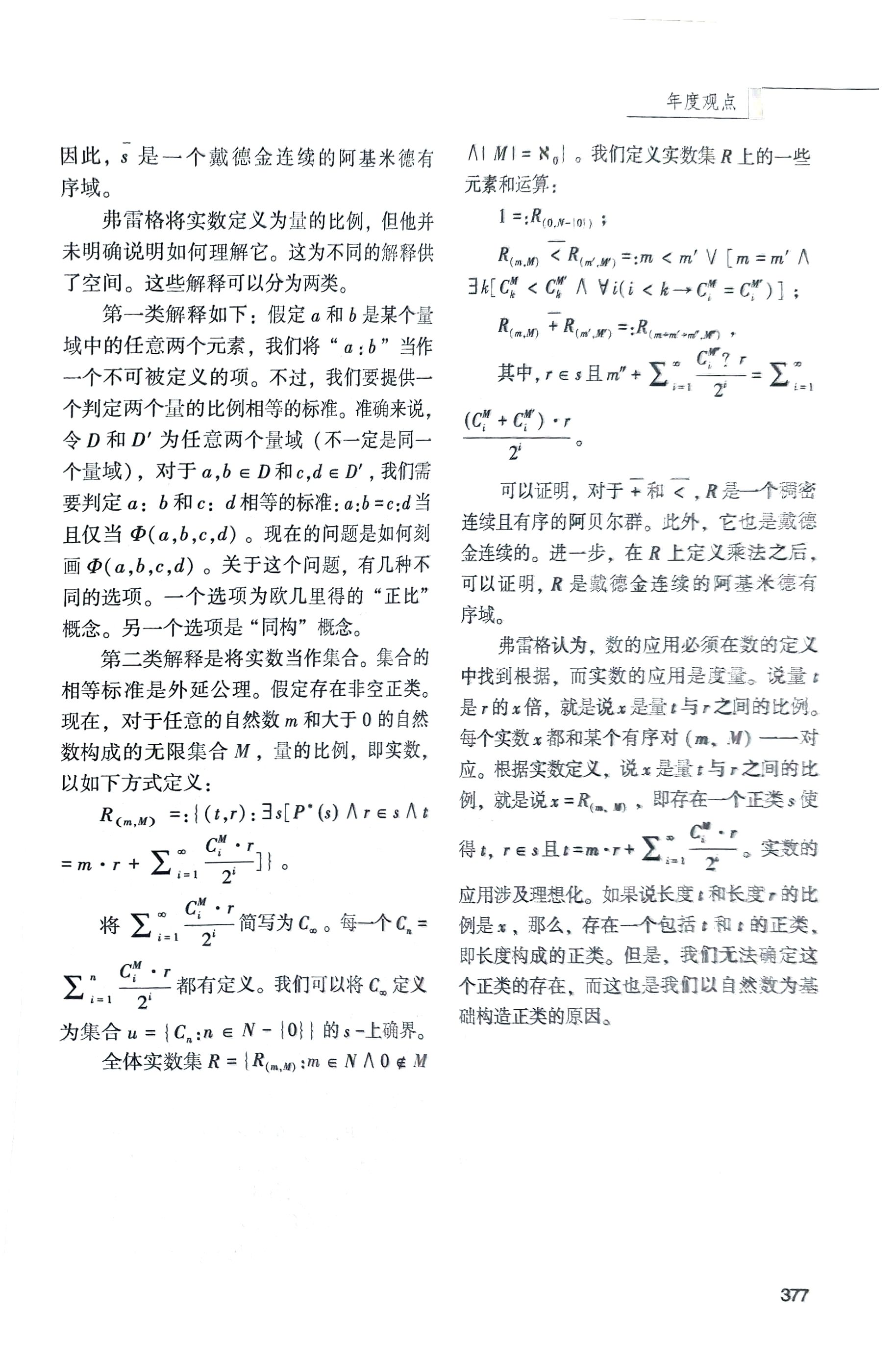 该文指出,实数理论是实分析的基础。19世纪实分析的发展迫切要求严格的实数理论。为了回应这一要求,很多数学家出了自己的实数理论。它们可以分为两类:实数的算术化和实数的几何化。在弗雷格看来,这些理论存在种种问题,特别是其无法说明实数的应用性。鉴于此,弗雷格出了自己的实数理论。
