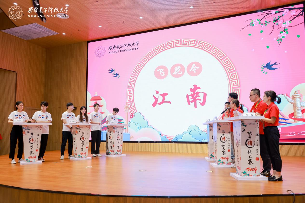 为丰富和活跃大赛氛围,西电师生还采用“视频+现场”的创新形式诵读《24节气》节选诗词;大学生艺术团表演舞蹈《诗韵舞蹁跹》,为大赛烘托出诗韵悠扬的氛围;特别邀请到的陕西人民广播电台全国演播艺术家海茵老师,为现场观众带来一场入情入境、余味悠长的《春江花月夜》朗诵表演。