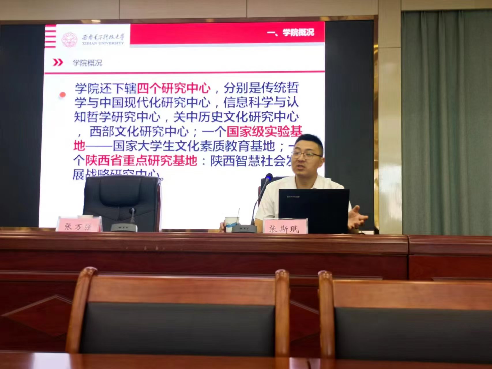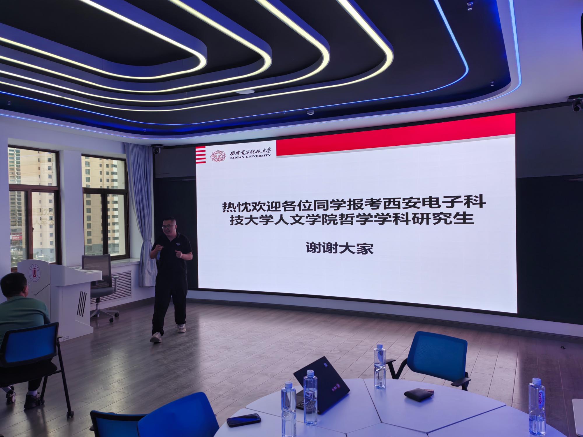 石福祁教授对两校对永利集团官网研究生招生工作的大力支持表示感谢,并简要介绍了永利集团官网的基本情况。随后,分管研究生工作的张斯珉副院长从四个方面介绍了永利集团官网哲学学科研究生的招生和培养情况。首先,他扼要梳理了近三年来研究生招生工作的大致考情,建议有读研意愿的学生应尽早选择目标院校。其次,他结合西安的历史文化与区位发展优势,全面介绍了永利集团官网哲学学科四个招生方向的学科特点与培养计划,并结合近几年毕业研究生继续深造和就业的典型案例,阐述了选择西电哲学学科读研所具有的若干比较优势。再次,他从学缘结构、科研成果以及国际化程度等方面,重点介绍了哲学学科各方向的师资构成,向两校师生展示了永利集团官网较为雄厚的师资力量。最后,他还介绍了学校关于研究生奖励资助方面的主要政策与做法,以及学院研究生教学、科研与研辅工作等其他事宜。张斯珉副院长的宣讲结束后,张万强副主任就上述问题进行了补充说明。