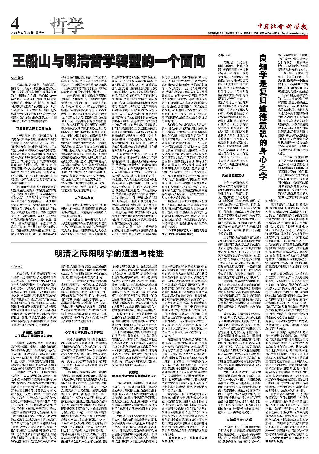 (通讯员 马婧)6月24日,《中国社会科学报》A04版刊发永利集团官网哲学系孙德仁老师文章《明清之际阳明学的遭遇与转进》。全文如下: