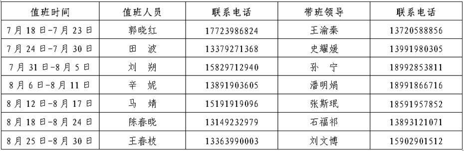 根据学校安排,现将3044永利集团官网暑假值班安排通知如下: