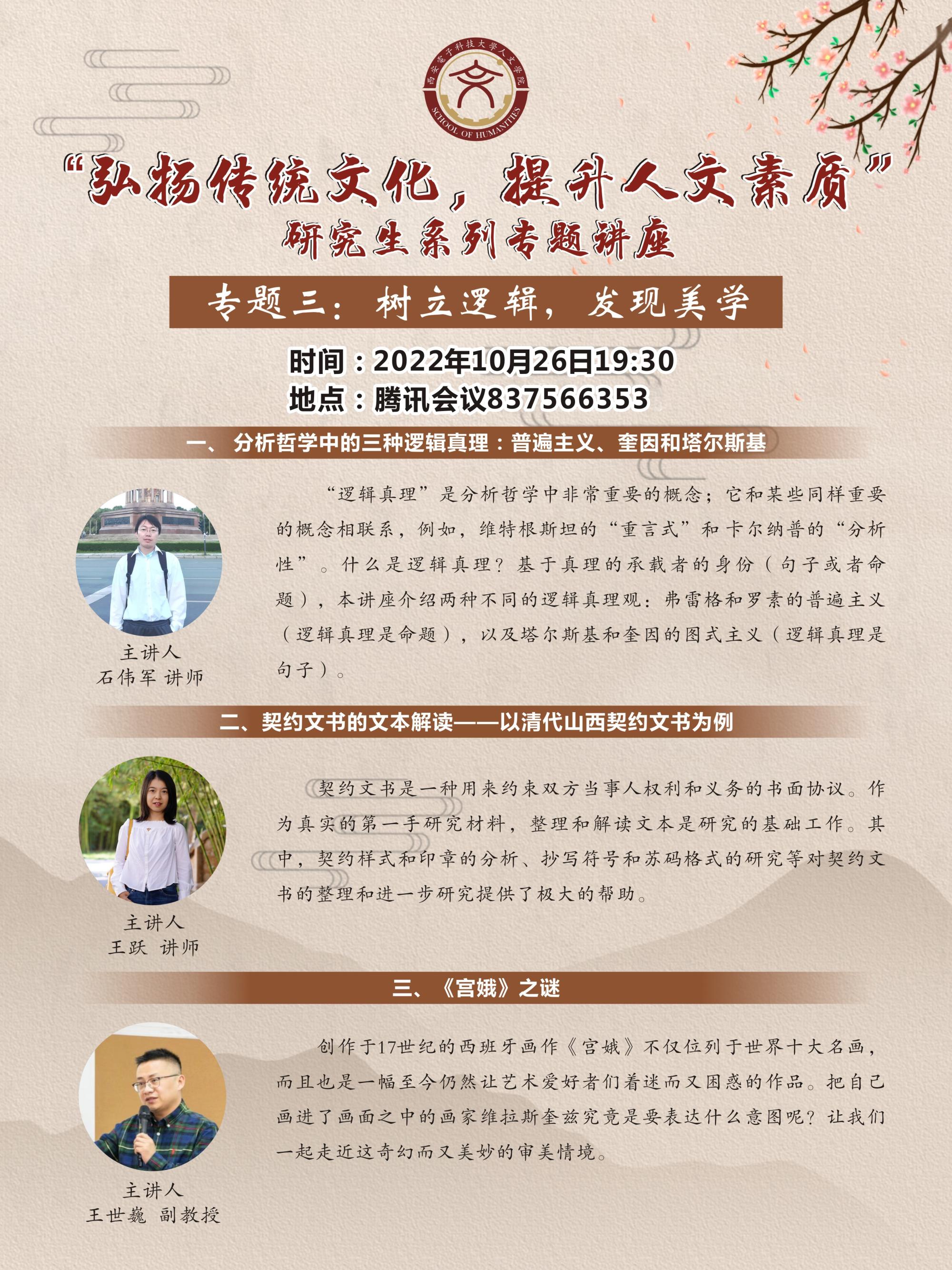 下一篇:讲座预告l“弘扬传统文化,提升人文素质”研究生系列专题讲座(专题二)