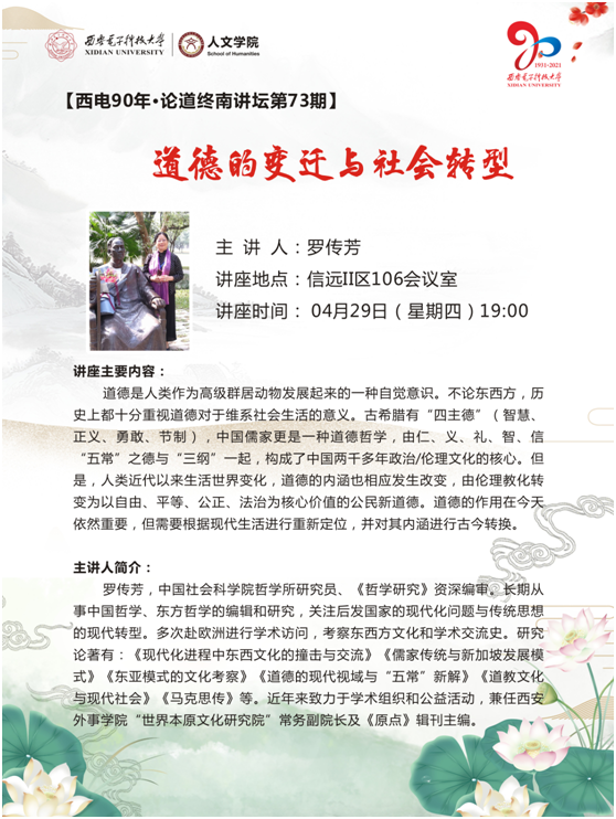 罗传芳,中国社会科学院哲学所研究员、《哲学研究》资深编审。长期从事中国哲学、东方哲学的编辑和研究,关注后发国家的现代化问题与传统思想的现代转型。多次赴欧洲进行学术访问,考察东西方文化和学术交流史。研究论著有:《现代化进程中东西文化的撞击与交流》《儒家传统与新加坡发展模式》《东亚模式的文化考察》《道德的现代视域与“五常”新解》《面向世界与未来:中国哲学的现代转型》《老子哲学的生存论特征及与儒家的分判》《反思与批判:东汉社会批判思潮的理论特征》《道教文化与现代社会》《马克思传》等。近年来致力于学术组织和公益活动,兼任西安外事学院“世界本原文化研究院”常务副院长及《原点》辑刊主编。