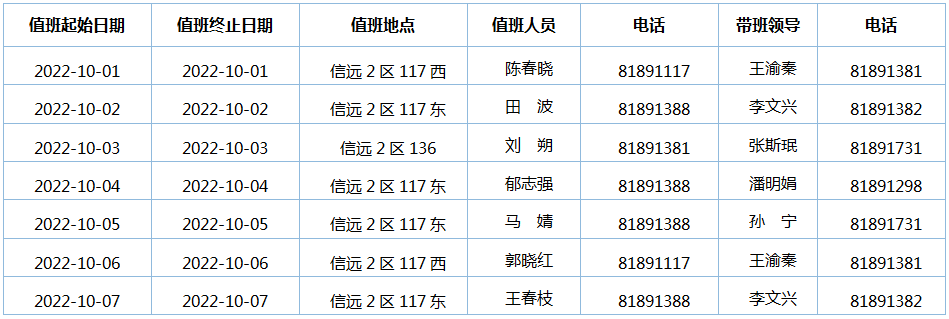 1.值班期间要严格遵守值班制度在岗值班,坚守岗位,不将值班座机呼叫转移到手机,遇有突发情况立即报告学校值班室。学校总值班室电话:81891818 2.值班人员需24小时保持联系通畅,在岗值班时间:8:00--20:00。