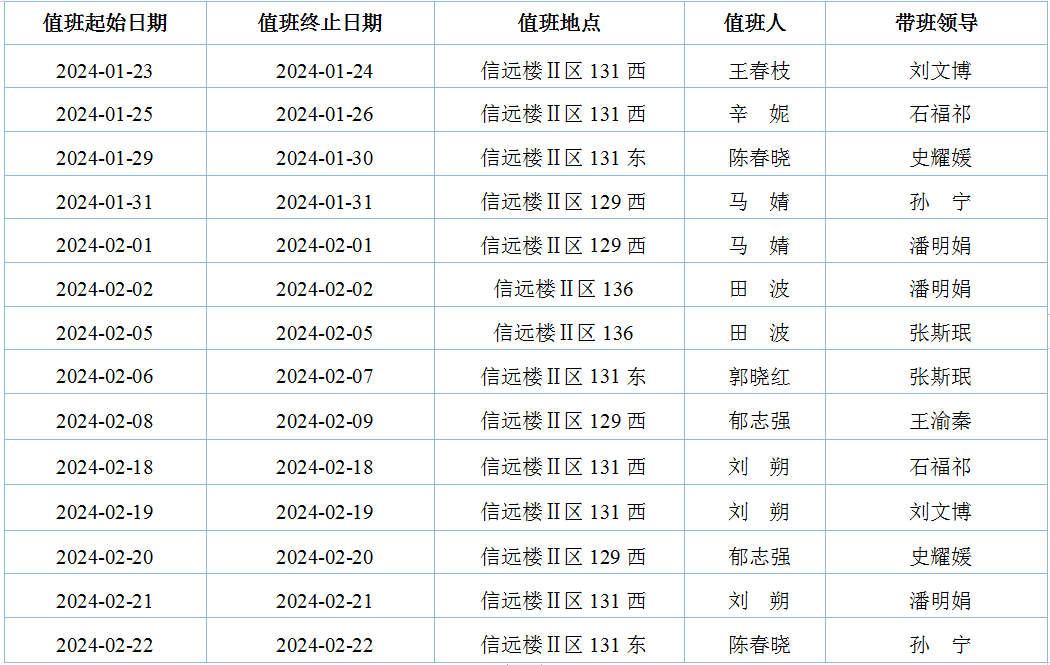根据《3044永利集团官网关于2024年寒假放假安排的通知》文件精神,现将3044永利集团官网寒假值班安排公布如下: