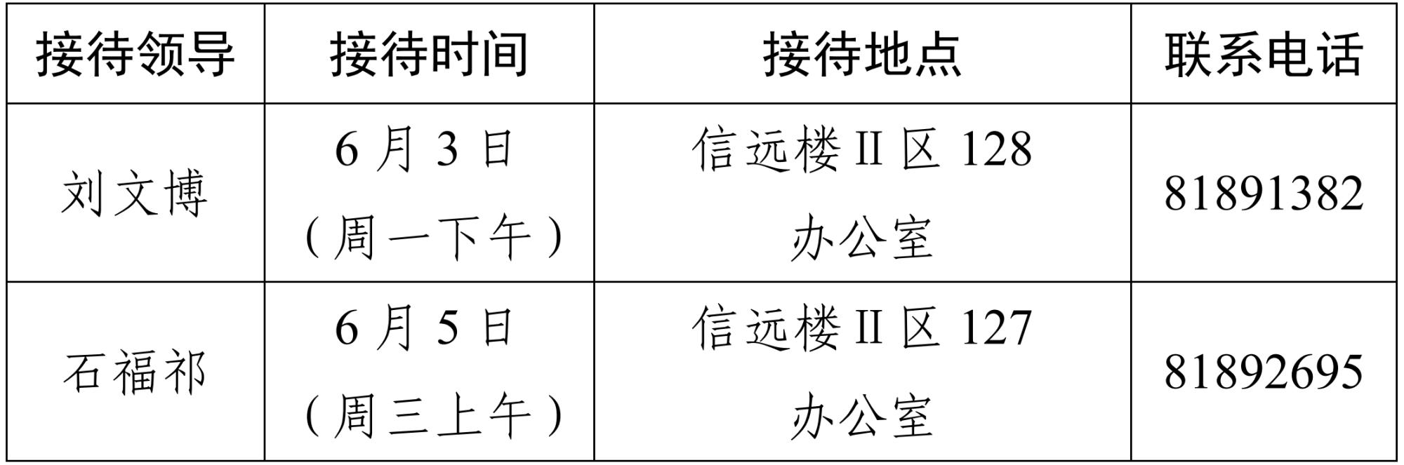根据《3044永利集团官网领导班子接待日制度》精神,每周安排两位学院领导接待师生。现将6月3日-7日学院领导接待安排公布如下:
