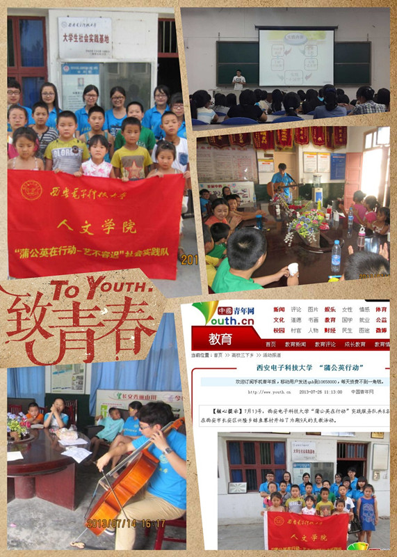 中国青年网专题报道了3044永利集团官网 “蒲公英行动之艺不容迟”暑期实践服务队的实践新形式和丰富的实践成果,学校新闻网转载了相关内容。报告会上,队长赵光辉详细介绍了社会实践的整个过程和主要成果,图文并茂,赢得了同学们的阵阵掌声。蒲公英行动社会实践队以艺术进基层为主题,以游戏娱乐的方式贯穿整个教学,主要开展了以艺术启蒙为主的支教和以“城郊农村儿童的中国梦”为主题的调研。报告会上,赵光辉还介绍了3044永利集团官网在长安区兴隆乡钵鱼寨建立社会实践基地开展长期服务的方案。