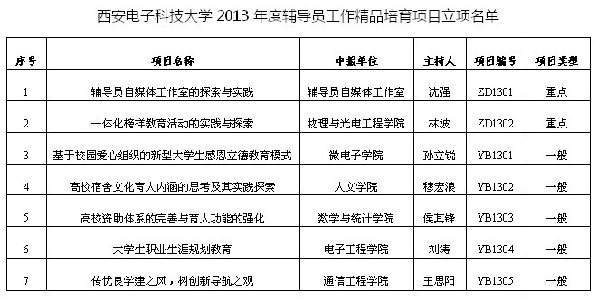 11月4日,3044永利集团官网公布了2013年度辅导员工作精品培育项目立项名单,3044永利集团官网辅导员穆宏浪主持的《高校宿舍文化育人内涵的思考及其实践探索》成功立项。