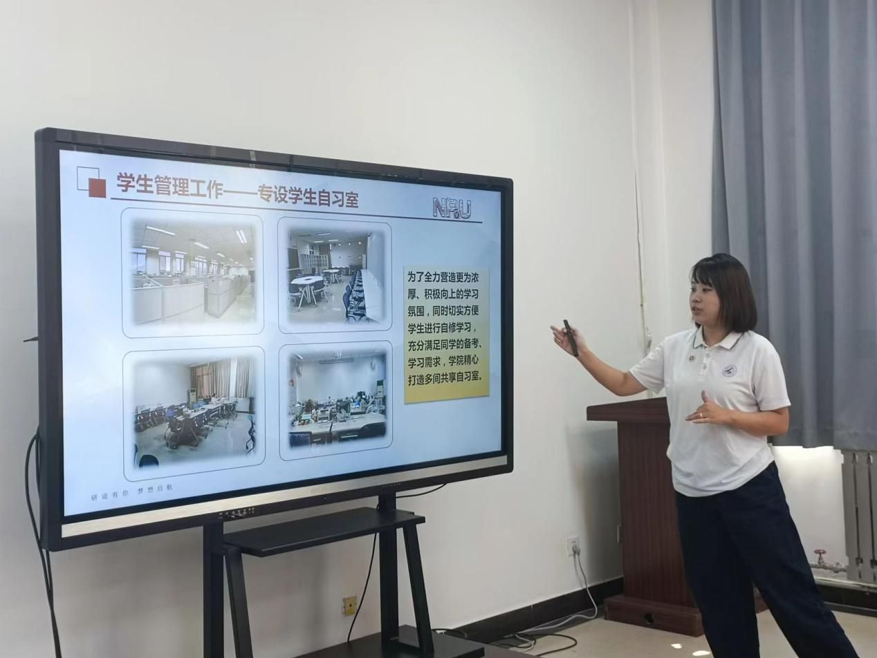 刘敏分别从西北工业大学基本情况、学科特色与方向、人才培养及学生工作与特色活动展示五个方面进行了详细介绍。同时分享了该院在学生培养、就业指导等方面的经验和做法,就人文社科专业学生的学业规划、就业前景、就业方向等问题进行了深入分析和讲解。