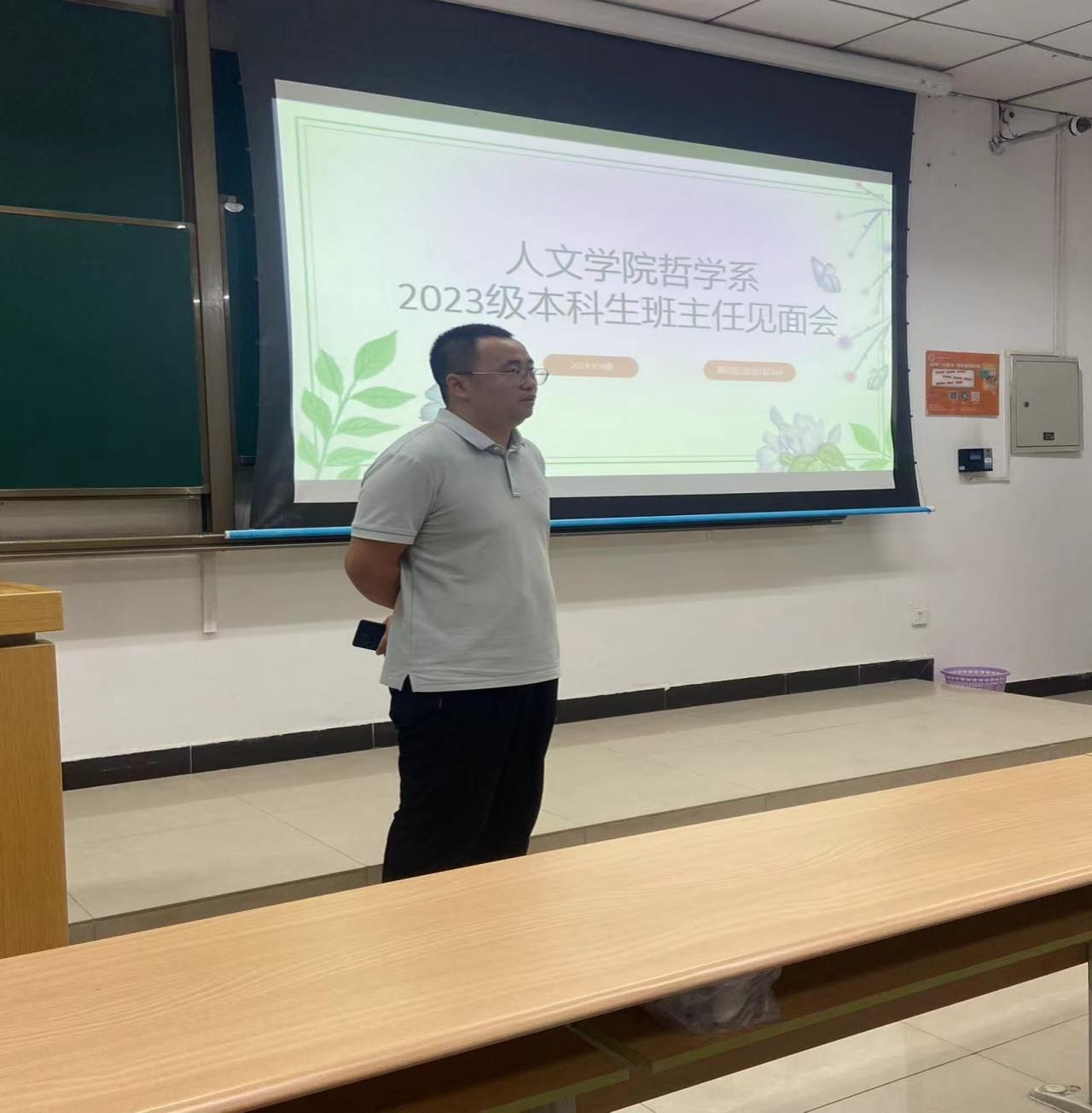 9月4日晚,哲学专业在信远Ⅰ区114举办班主任见面会。班主任孙德仁强调,学院一直以来致力于整合哲学教育资源,提供多样化的学习活动与机会,全方位支持学生在学术、思想及个人成长等方面的全面发展,助力学生构建坚实的哲学基础与人生规划。他指出,大二学年为成长关键期,鼓励学生运用哲学思维审视自我、明确目标,奠定坚实的人生基础。